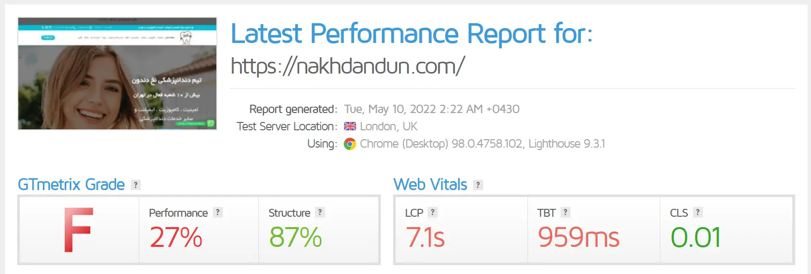 نتیجه سئو فنی سایت نخ دندون بعد از انجام کار را می توانید در زیر مشاهده کنید.