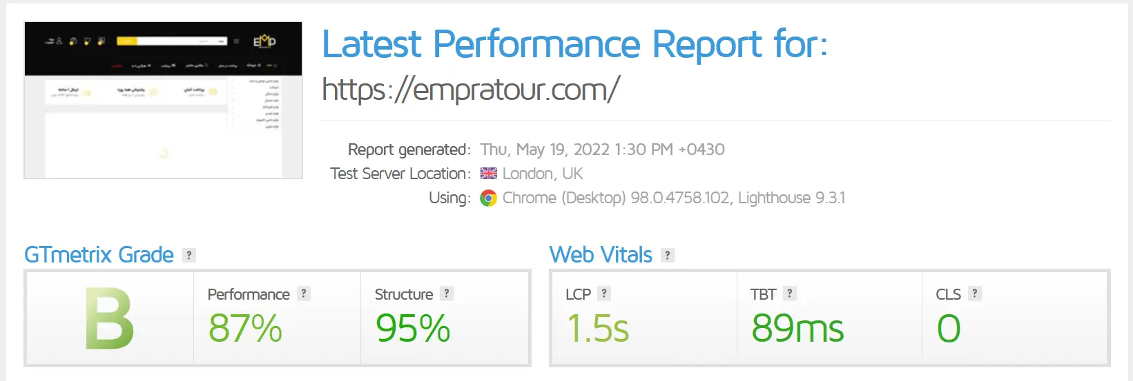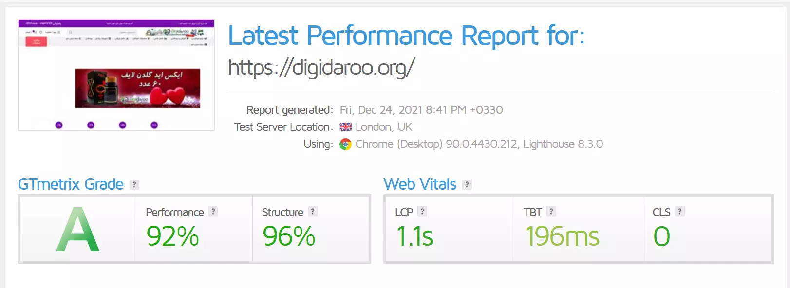 بعد از سئو فنی در سطح استاندارد های جهانی نمرات خیره کننده زیر حاصل شد.